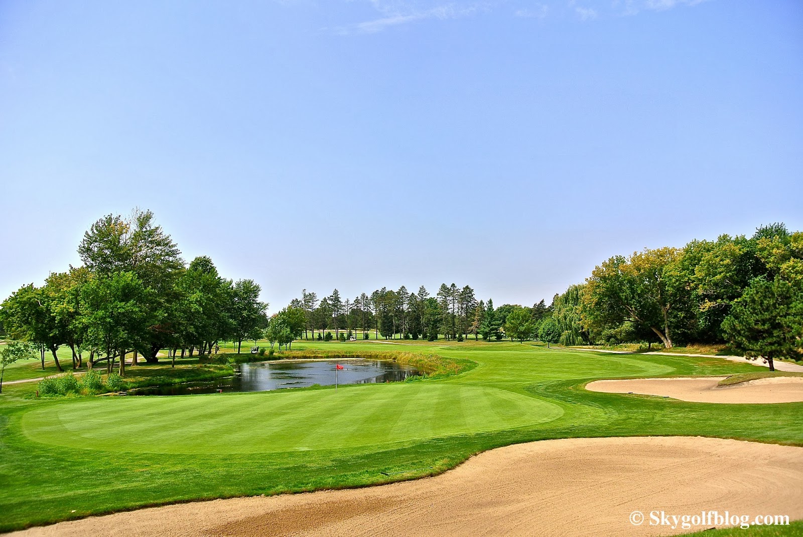 Pine Meadow is a 7297 yds classic parkland (74,8/138), with seven sets of tees to choose from. Bentgrass fairways are wide and most of the holes are generally forgiving on errant shots giving the golfer easy chances of recovery. Greens are generous in size, receptive and relatively easy, rolling true on the day I played. The layout is surrounded by a lush vegetation including shagbark hickory trees, 200 year old oak trees, pines, maples, six water hazards and tree lakes, and of course sand bunkers, 86 of them.